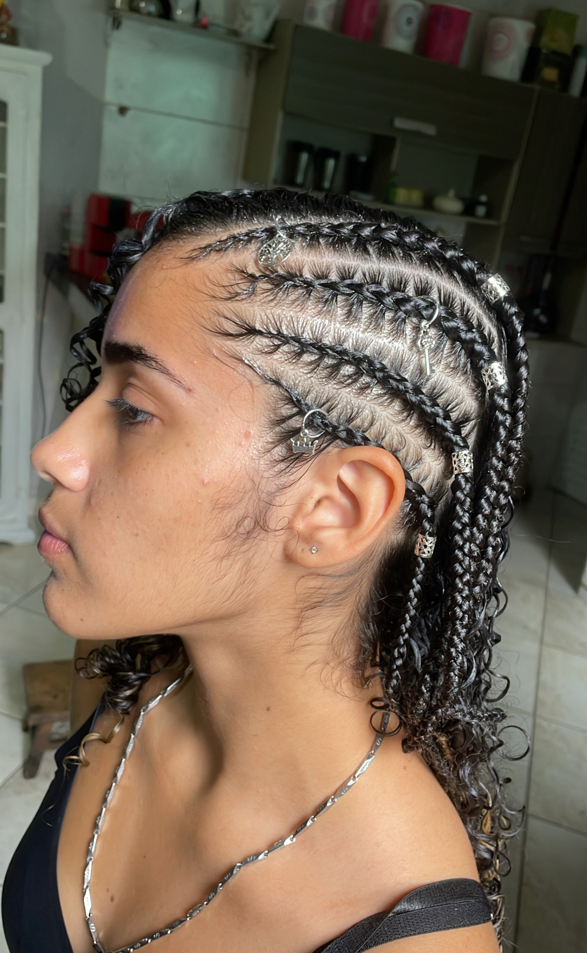 Criada para quem deseja um visual único e cheio de personalidade, a Fulani com Cachos combina técnicas tradicionais com um toque moderno. Ideal para quem quer exibir um estilo sofisticado e culturalmente rico, ela garante definição e volume aos fios. Disponível em diversos estilos e tamanhos.